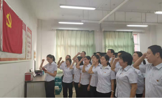 在鮮紅的黨旗下,全體黨員舉起右手,握緊拳頭,面向黨旗,莊嚴宣誓:“我志愿加入中國共產黨,擁護黨的綱領,遵守黨的章程,履行黨員義務……”鏗鏘有力的聲音帶大家重溫了共產黨人的初心和使命。此次活動增強了全體黨員的黨性意識,促使大家更加全心全意地投入到教學科研當中,以生為本,扎實課堂,引導學生成長成才。