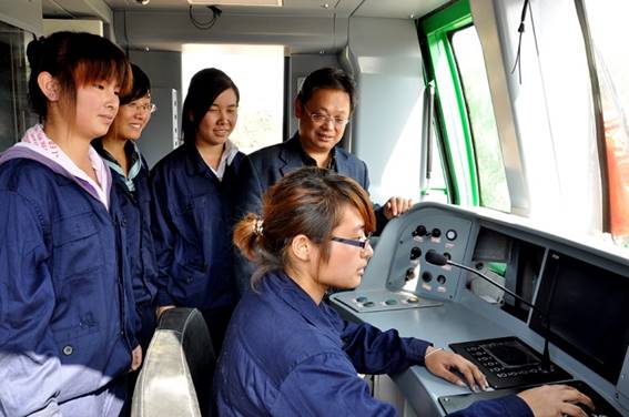 “山職號”城軌車輛教學實訓車是由南京海天軌道車輛裝備有限公司與山東職業學院軌道交通應用技術研究所聯合開發,學院師生全程參與設計、安裝、調試完成。該車是以地鐵A型車頭車為載體,集城軌電動車組牽引、制動、網絡、轉向架、鋁合金車體制造、客室內裝、通訊照明及空調通風等核心技術于一體,90%的零部件均采用真實合格產品,是目前我國具有軌道交通類專業的學校中技術最先進、功能最完善、實訓效果最突出、社會效益最大的教學裝備。列車不僅可以為城軌車輛專業、城軌駕駛專業、機車車輛專業、鐵道機車專業、鐵道車輛專業、動車組專業直接提供列檢作業、駕駛培訓、庫檢作業、車輛電氣檢修、車輛檢修、機車檢修、動車組運用維護、動車組檢修等真實工作環境,從而完全替代現場實習,同時,列車還可以配合地鐵站臺設施為城軌運輸管理專業、鐵路運輸管理專業、鐵路信號專業提供實訓教學服務,為山東省軌道交通運輸系統提供職業培訓工作。