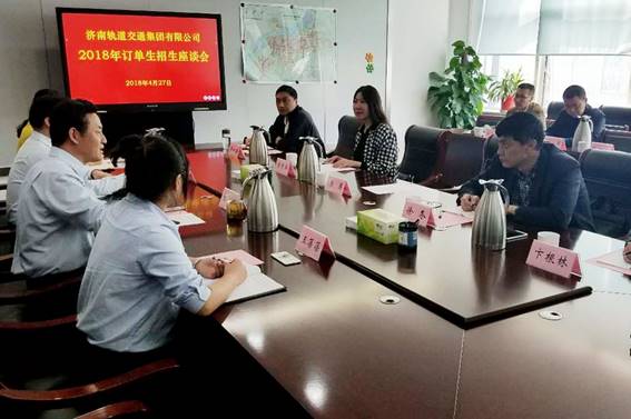 值濟南首條地鐵R1線全線貫通之際,4月27日,黨委副書記徐冬率隊赴濟南軌道交通集團有限公司(以下簡稱“濟南地鐵”),與濟南地鐵紀委書記哈月亭、人力資源部長趙東、運營公司人力資源部長趙白雪等,洽談2018年訂單招生相關工作。