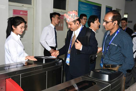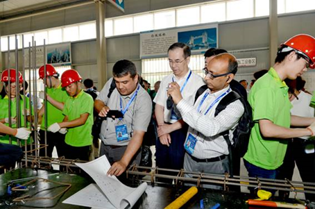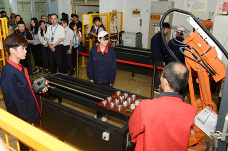 今年6月9日至10日,上海合作組織成員國元首理事會第十八次會議將在山東青島舉行。作為我國重要的主場外交活動之一,上合峰會備受矚目。5月29日,中國工會“一帶一路”人文交流——上合組織國家職工技能交流營代表團一行27人在中國職工對外交流中心國際聯絡處處長何際霞、副處長毛麗娜,山東省總工會副主席李臻,山東職工對外交流中心主任白明的陪同下,到我院參觀訪問。山東省委教育工委委員,省教育廳副廳長、黨組成員白皓,學院黨委書記王榮昌、院長秦河等陪同參觀。