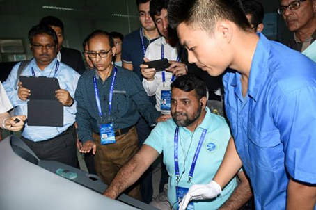 訪問期間,代表團一行參觀了學院軌道交通實驗實訓中心、智能制造加工實訓中心、施工技術實訓場、鐵路接觸網實訓演練場、鐵路養護維修實訓場、鐵道機車車輛綜合檢修實訓車間等實驗實訓場所,向教師了解實訓場所主要功能和實訓課程情況,與正在現場實訓的學生熱情交談,觀摩了解學生創新發明作品,切身體驗實驗實訓設備,直觀感受職業教育魅力。