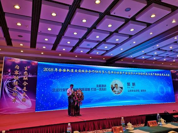 9月2日,副院長郭鵬赴京參加了由北京智聯友道科技有限公司(以下簡稱“智聯友道”)牽頭主辦的2018年全國軌道交通協會校企合作協同育人高峰論壇暨中國通信工業協會軌道交通產教聯盟成立大會。期間,郭鵬代表學院與智聯友道簽署了戰略合作協議,并在大會上分享了我院集團化辦學經驗。