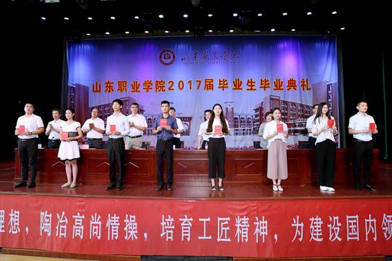 院長秦河在典禮上發表了熱情洋溢的講話。他指出,三年前,同學們懷揣著希望和夢想邁入山東職業學院的大門。三年來,大家在這里勤學苦練、厚積薄發,釋放活力與激情,積蓄本領與力量。同學們學業有成、順利畢業,是學校、家庭、社會,師長、親人與大家共同努力的結果,是我們共同的成就、共同的杰作。學院由衷地為你們的成長、進步而高興,為擁有你們這樣優秀的學生而自豪。