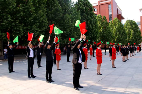 禮者敬人也 。為樹立新時代大學生的文明形象,展現青春風采,豐富職教周形式,5月9日,城市軌道交通系舉辦禮儀風采展示。 同學們個個身姿挺拔,熱情洋溢,整齊的隊列散發著青春的朝氣與魅力。旗手們手持彩旗,不斷變換著姿勢和動作,最終擺出了助力職教周的英語首字母"ZLZJZ",他們英姿颯爽,步伐整齊,口號鏗鏘有力,以其團結協作的精神,熟練的動作,贏得了觀眾的陣陣掌聲。表演禮儀操的女同學統一著裝,優雅的舉止、曼妙多彩的身姿,將傳統禮儀的美感與涵養表現得淋漓盡致。