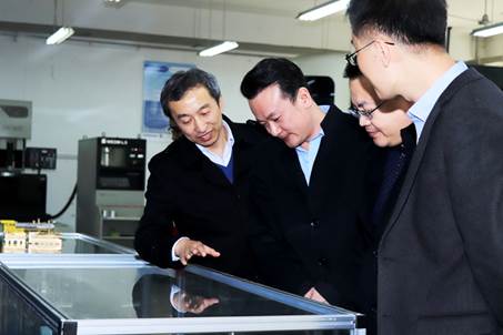 郭鵬陪同田榮華一行參觀了機械系數控實習車間、機電創新實訓室、SMT實訓室、VBSE實訓基地、城市軌道交通實訓基地、創新實踐基地場地等實訓場所,田榮華對學院實驗實訓條件給予了高度贊許。