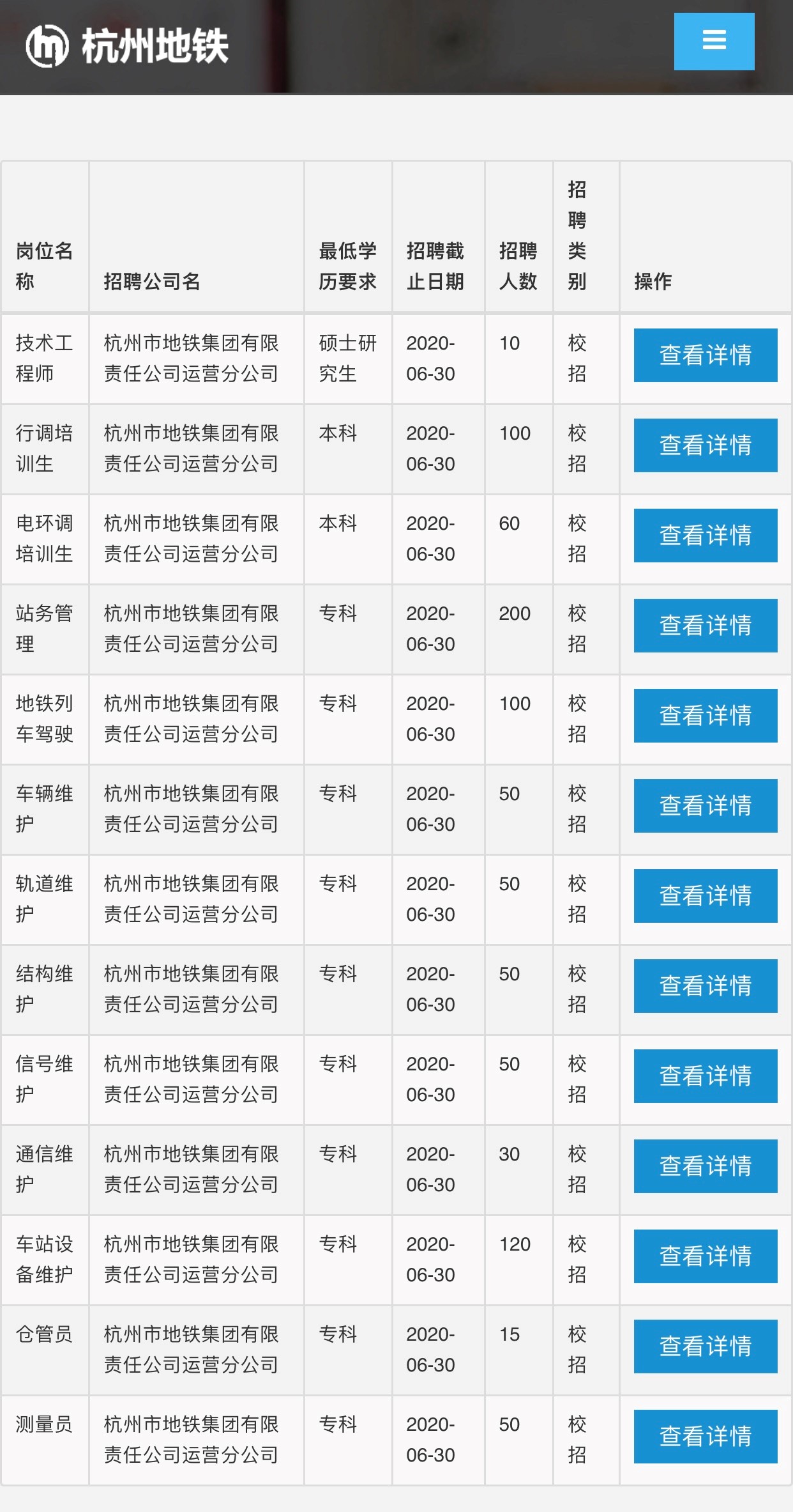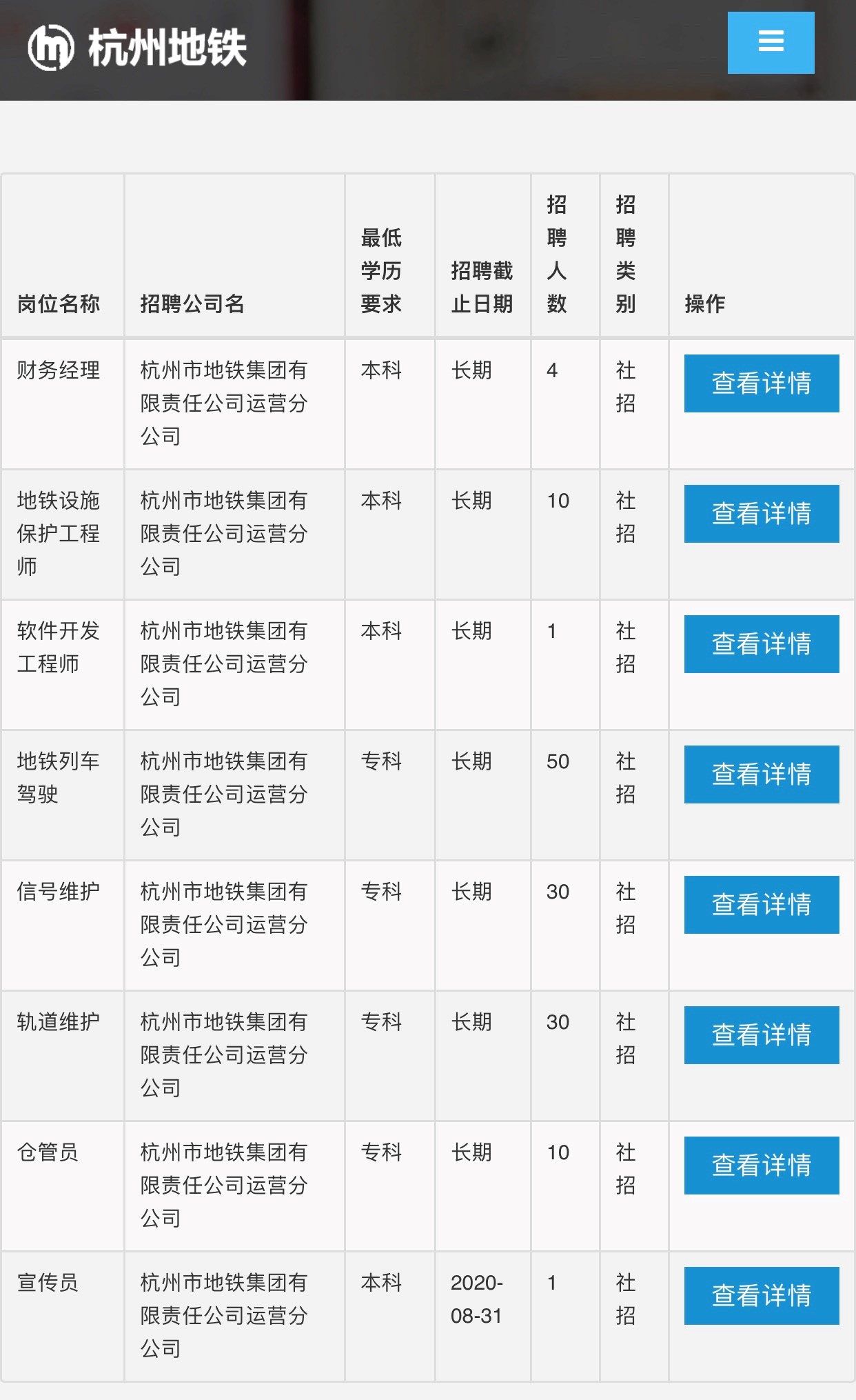 1000人+,專科可報!杭州市地鐵集團運營分公司公開招聘