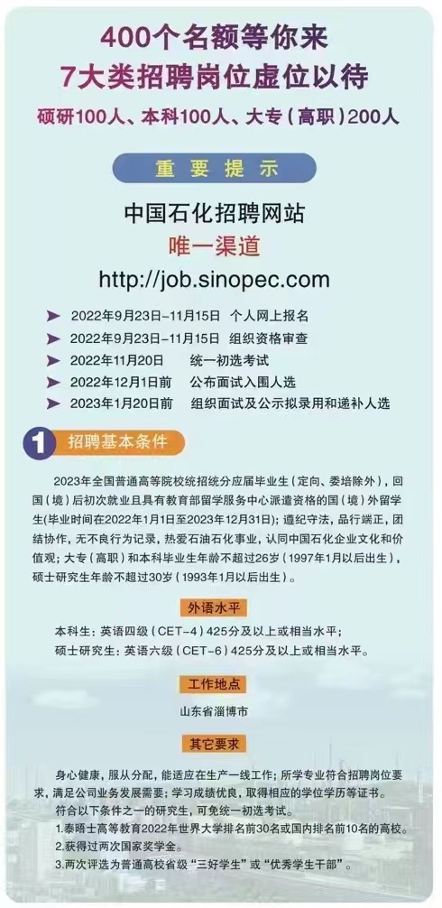 400個名額等你來,7大類招聘崗位虛位以待(專科200人)