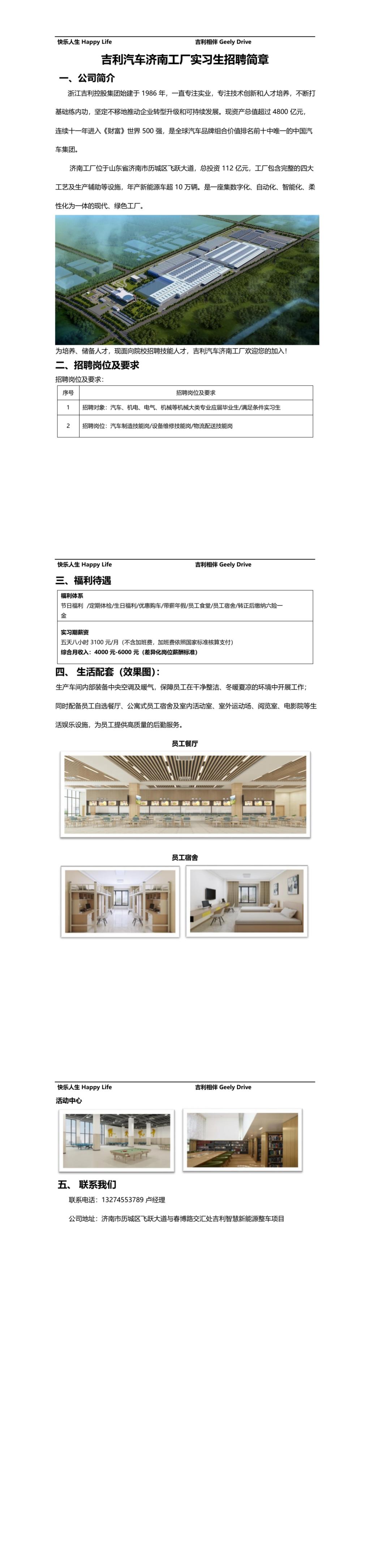 吉利汽車濟南基地實習生招聘簡章