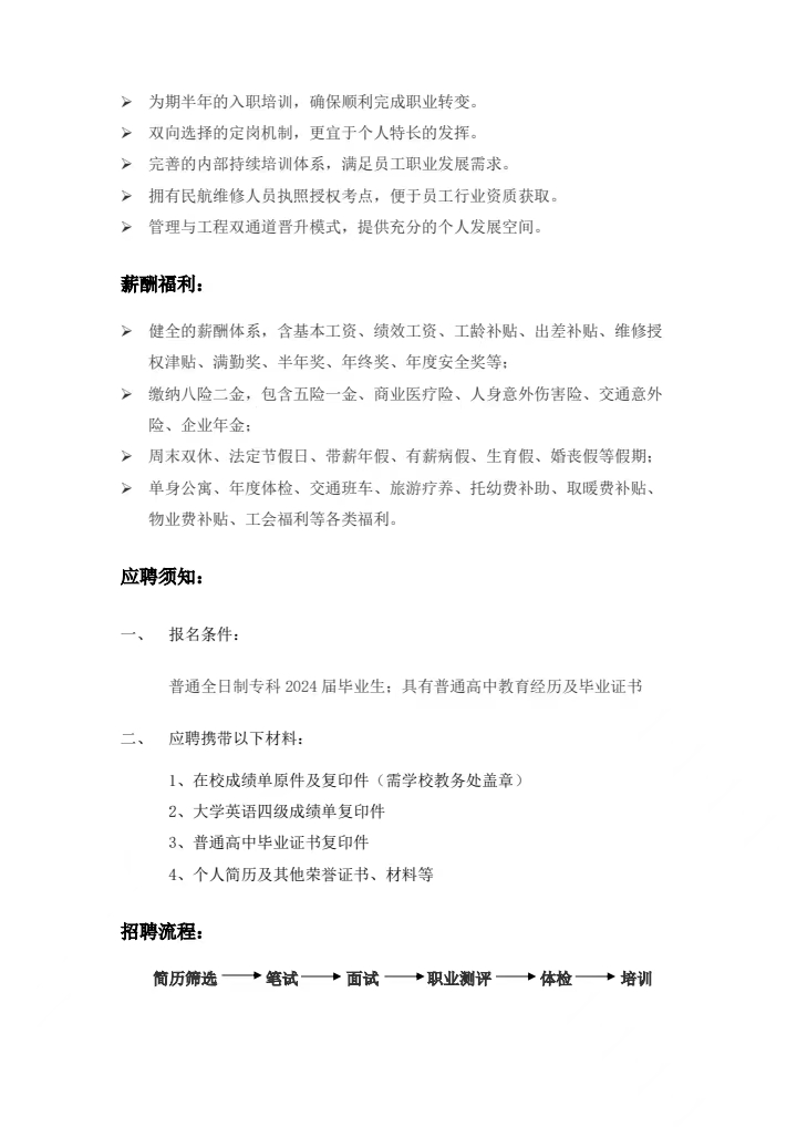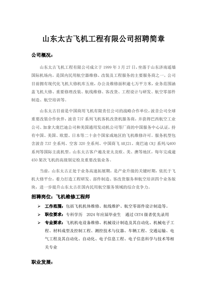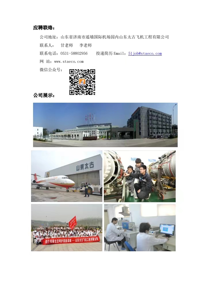 山東太古飛機工程有限公司招聘簡章