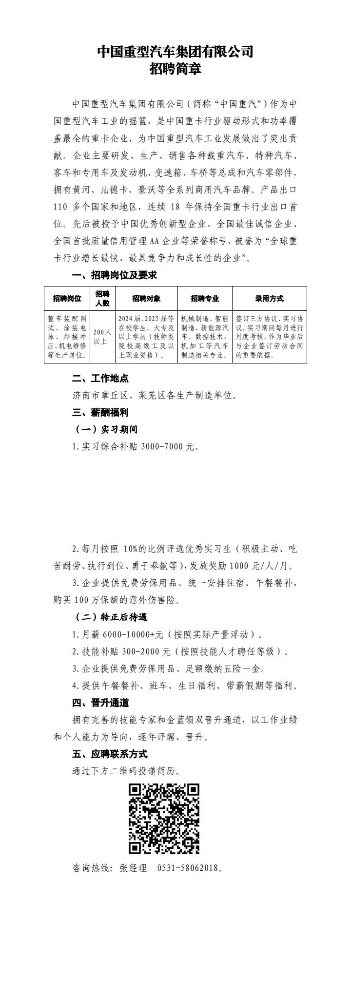 中國重型汽車集團有限公司招聘簡章