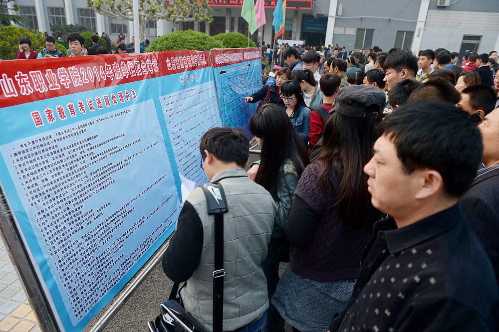 4月12、13日,山東職業學院2014年自主招生考試開考。今年是學院自2011年以來連續開展單獨招生的第4個年頭,12日早上不到8點,前來考試中心進行信息確認的考生已經排起了“長龍”。“這樣火爆的場面,也只有公務員考試和綜合類的大型招聘會才能見到。”來自新華網、人民網、新浪網、山東教育電視臺、齊魯晚報、齊魯網、360教育在線等多家媒體的記者一致感嘆。 為確保考試的開展順利,學院前期成立了單獨招生考試工作領導小組,加強對此項工作的領導,選派了一批政策水平高、工作認真負責、作風正派、辦事公道的教師和管理人員擔任考務人員,紀檢部門全程參與考試工作,建立健全監督機制,保證考試錄取工作公平、公正、透明。 12日當天,學院副院長徐冬、副院長祝瑞花、紀委書記祝介安親臨考點監督指導考務工作。期間,學院領導還來到考生和家長中間,與他們親切交談,詳細詢問報考專業、家庭情況、興趣志向,介紹學院的辦學歷史、特色和就業前景,鼓勵考生們抓住單招機遇,邁入山職大門,好學上進,自強不息,做一名出色的山職人。 據學院招生就業指導中心主任張少飛介紹,今年單獨招生較去年相比,招生計劃增加了50個,總數達到600人。通過審核的報考人數達3010人,是去年的1.6倍。特色專業鐵道交通運營管理(高級乘務班)是去年計劃人數的2.25倍,達到45人,通過審核的報考人數達1000多人,再創新高。雖然招生專業與去年同樣為16個,但今年新增了道路與橋梁工程技術、汽車檢測與維修技術、工程機械控制技術(鐵路方向)3個專業,中職對口新增了焊接技術與自動化、汽車檢測與維修技術等2個專業。 在通過對學生和家長的采訪了解到,今年大多數考生還是瞄準了鐵道交通運營管理、電氣自動化技術、機械制造及自動化、機電一體化技術、汽車技術服務與營銷、道路與橋梁工程技術、汽車檢測與維修技術、工程機械控制技術(鐵路方向)等熱門專業,不少人希望通過三年的在校學習,能夠順利走進鐵路和軌道交通行業的相關單位。 13日是單獨招生考試筆試日期,考試科目為語文和數學。考生家長普遍認為,單獨招生考試較夏季高考相比,科目少,考生備考復習更加集中。可以說,單獨招生考試為廣大考生提供了一次難得的求學機會。一位來自日照的家長表示,現在社會對人才的認可正逐步向“崇尚一技之長、不唯學歷憑能力”轉變,孩子能通過單招考試進入到山東職業學院學習,在加強理論知識學習的同時專業技術能力得到鍛煉和提升,從以后的就業看,要比削尖腦袋沖進本科院校更有競爭力。 據悉,按照學院單獨招生的錄取原則,在校期間參加全國或省級職業院校技能大賽獲得三等獎以上獎項的各類中等職業學校應屆畢業生,在畢業當年,考生可以向學院提出申請,經資格審核后,免試進入學院對口專業(專科)學習。擇優錄取方面,考生在成績相同的情況下,如在高中階段獲得省級三好(優干)榮譽稱號,在市級以上科技創新發明類比賽、體育文藝類比賽、職業技能比賽中獲得三等獎以上的,報學院領導小組審批同意后可優先錄取。這也說明,學院單獨招生工作正逐步從對考生的文化課考核向綜合素質全面考核邁進。
