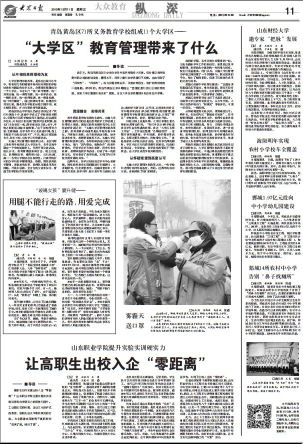 12月11日,大眾日報以《山東職業學院提升實驗實訓硬實力 讓高職生出校入企“零距離”》為題就我院國家骨干高職院校建設工作——實驗實訓基地建設情況作了專題報道。