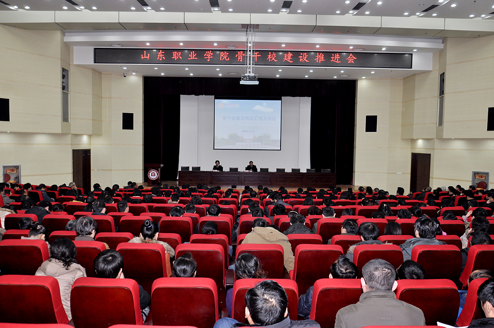 1月12日下午,山東職業學院召開國家骨干高職院校建設推進會,通報國家骨干高職院校三年建設情況,就下一步完善收尾工作和迎接驗收工作作動員部署。學院黨委書記劉邦治在會上作重要講話,副院長祝瑞花就骨干校建設情況在會上作通報。學院黨委領導班子成員和全院教職工參加了大會。