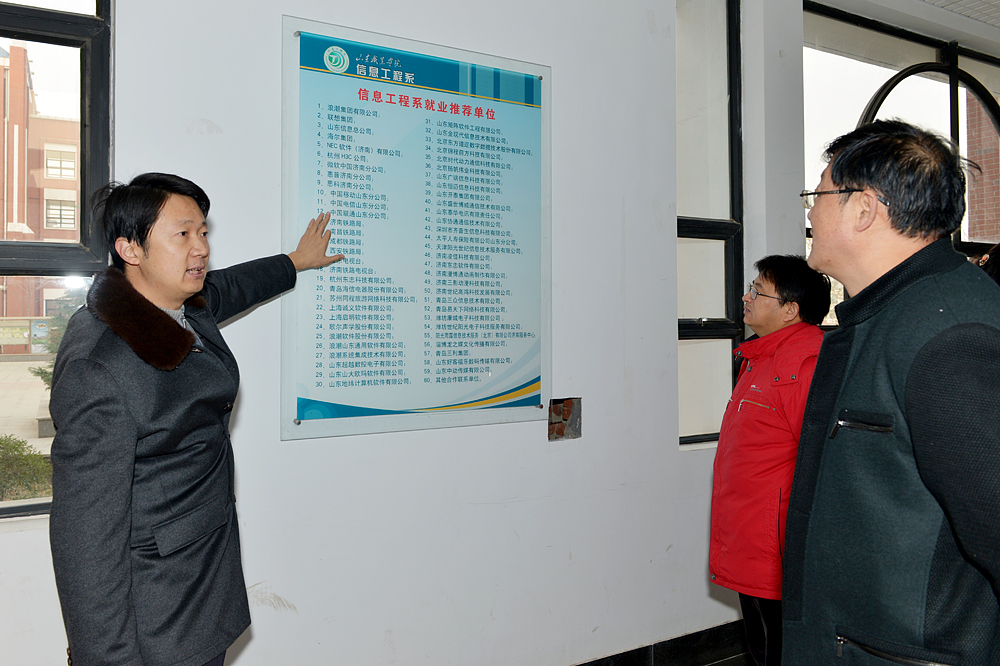 信息工程系是學院信息技術人才培養的搖籃,還承擔著山東省服務外包人才培訓工作。考察團向該系黨總支書記張亦輝詳細了解了各專業校企合作、人才培養、畢業生就業等工作情況,并就特色專業建設和學生歷年參賽獲獎情況作咨詢了解。