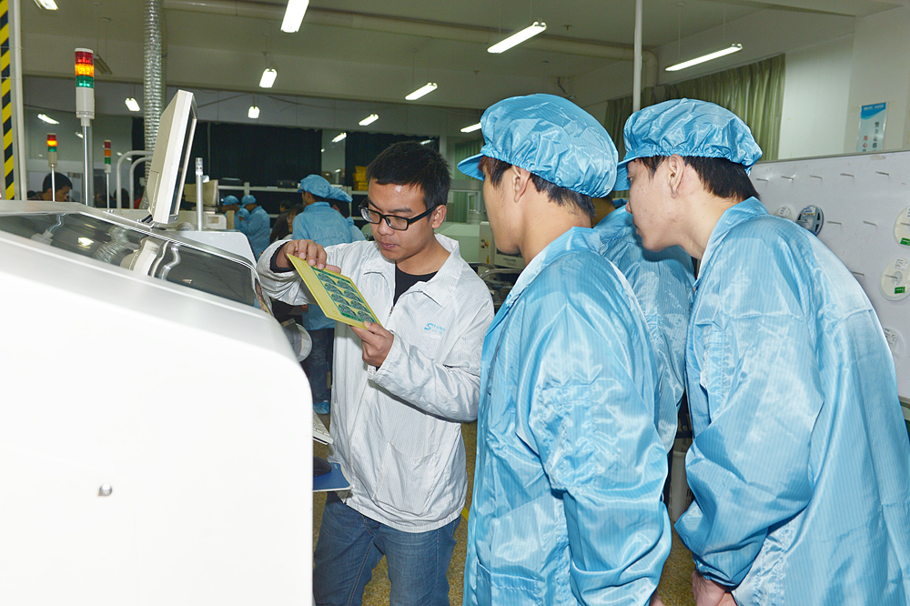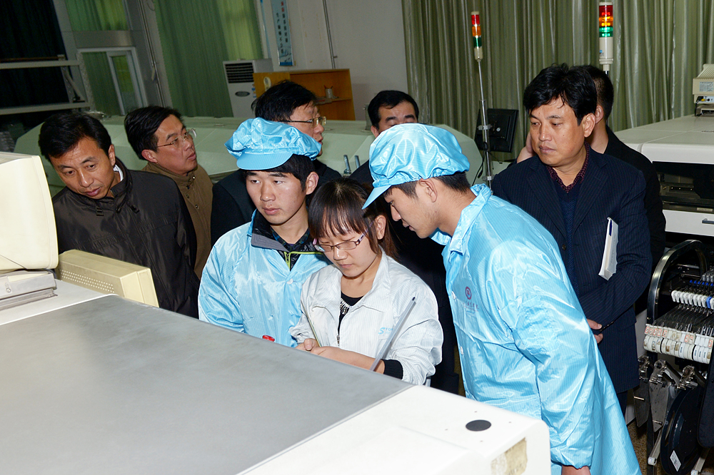 SMT生產實訓中心是電氣工程系最具特色的“校中廠”,在這里不僅可以現場完成集成電路的制作為企業承擔生產任務,還可以通過現場教學充分激起學生的學習激情,將理論知識與實際操作緊密結合。該系主任于洪永向考察團介紹了該中心“產學研結合”的發展現狀,并就現代通信技術實訓基地的建設使用情況作詳細說明。