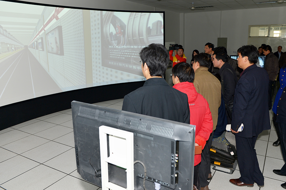 在軌道交通實驗實訓中心,軌道交通學院常務副院長吳書鋒向考察團詳細介紹了該中心的各項教學功能。地鐵模擬駕駛室真實再現了地鐵列車在各種工況下的運行狀態,模擬車站再現了地鐵運營過程中的買票、檢票、上車等系統流程,城市列車可以讓學生在校學習期間每一個零部件進行檢測、拆裝、維修。