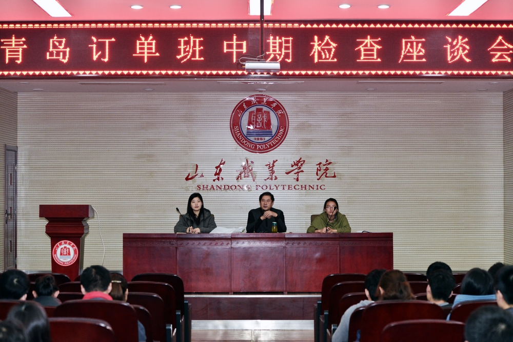 潘處長一行還與訂單班的學生進行了座談,向學生介紹了目前公司的發展狀況,提出了學習、紀律等方面的要求,鼓勵學生扎扎實實打好基礎,為青島地鐵的開通做好準備。