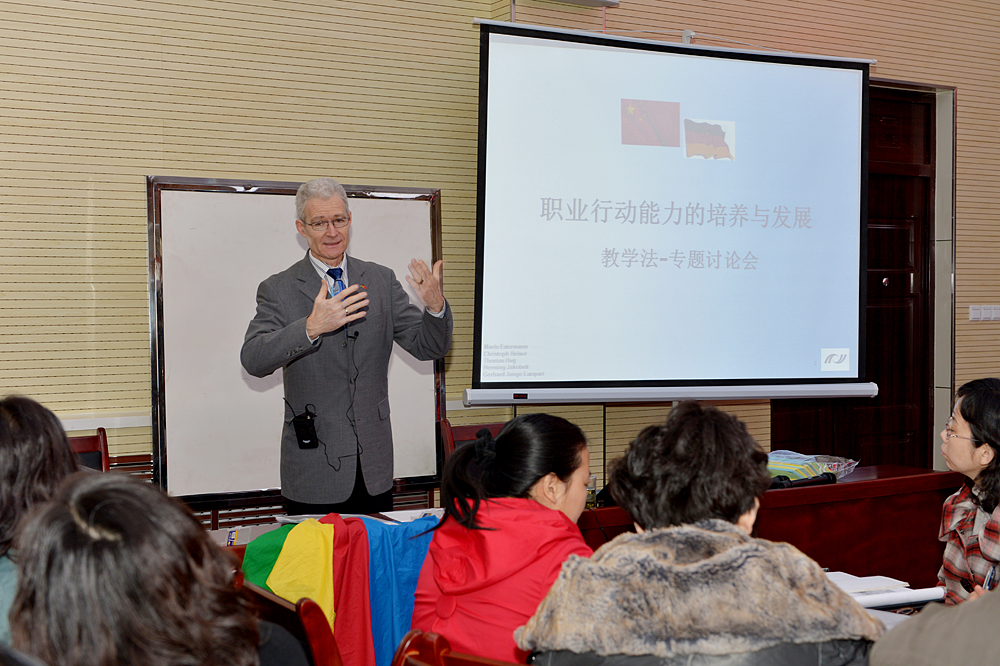 3月19日,山東職業學院“職業行動能力培養教學法”培訓班開班,邀請到德國巴伐利亞州著名職業教育家Mr.Hug(托馬斯.胡革)教授擔任本屆培訓班主講。 教育部中國教育國際交流協會綜合項目部鄭德先生、山東省教育廳高教處副處長李霞、山東職業學院黨委書記劉邦治、副院長祝瑞花出席開班儀式。學院相關職能部門及各系部專業教師參加了本屆培訓班。開班儀式由祝瑞花主持。 劉邦治為培訓班開班致辭。他代表山東職業學院對胡革教授及出席本次培訓班開幕式的領導表示熱烈的歡迎,希望參加培訓的教師倍加珍惜學習機會,虛心學習和掌握先進的教學理論和方法,進一步提高執教能力,當好一名受學生歡迎的人民高校教師,推動學院的國家骨干院校項目建設,進一步促進學院的內涵發展。 祝瑞花在講話中要求參訓教師通過培訓理解“行動導向教學法”的精髓,掌握課堂教學的方法和技巧,并結合自己的專業實際貫徹應用到教學過程中。 在為期四天的培訓中,胡革教授將從職業教育行動導向法的實質、能力目標下教學形式的轉變必然性分析、教育心理學發展成果等幾個方面對現代職業教育的推動和促進、行動導向教學原則下教學方法的多樣性、職業院校教學法及其特點分析等方面結合實用、有趣的關鍵字卡片法、理解標注文字法、小組擴展法、可視化法、伙伴拼圖法、旋轉木馬談話法、邏輯關系法、站位法、工作與小組過程提煉法等十幾種教學方法,以及如何運用這些方法在工作任務導向下培養學生的職業行為能力,向參訓教師詮釋行為導向教學法的精髓。 近年來,山東職業學院高度重視教育教學質量,不斷創新教育教學方法,在國家骨干高職院校建設過程中大力推進教學改革深化,組織專職任課教師赴境內外等多地學習先進的職業教育方法和育人理念,邀請國內外著名專家、學者到校進行相關講座和培訓,支持和鼓勵專業教師在日常教學中創新教學模式。教育質量的常抓不懈和教學方法的不斷改進,促使山東職業學院的學生專業素質逐年提升,“就業靠專業,發展憑素質”育人理念真切落到每一位山職人的身上,“專業素質過硬、就業率高、就業質量高”成為社會各界和用人單位對山職畢業生的一致評價。