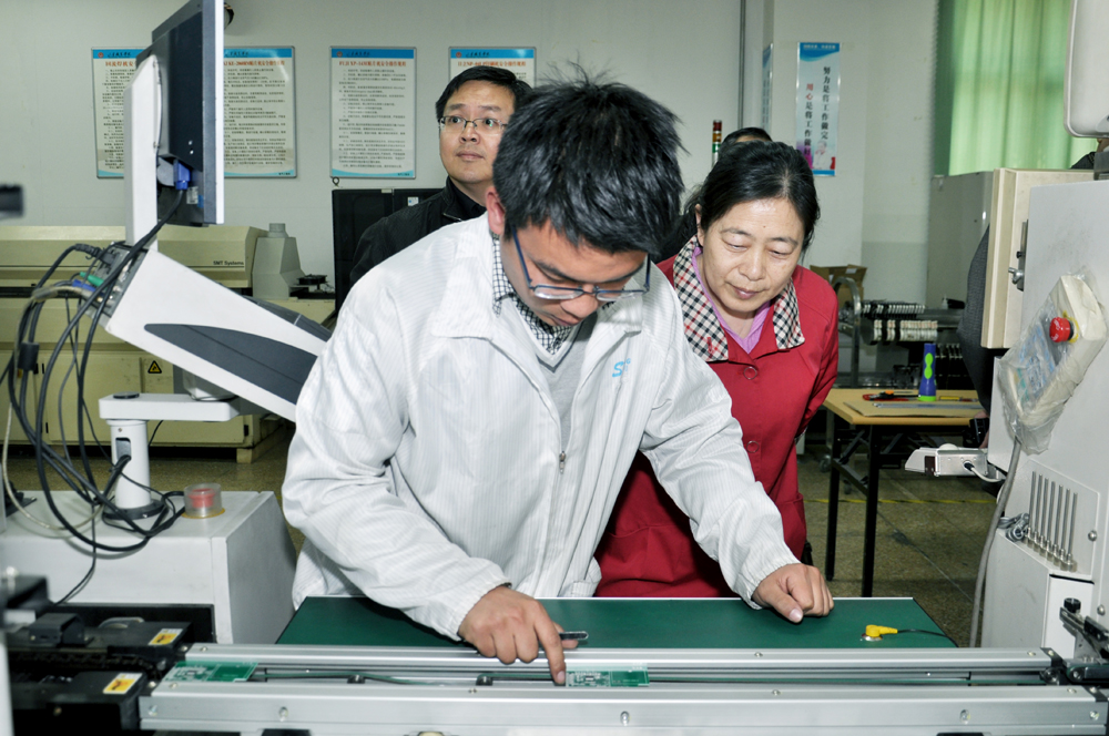 座談結束后,付莉一行在祝瑞花的陪同下參觀了學院軌道交通實訓中心、電氣工程系SMT生產線等實驗實訓場所。