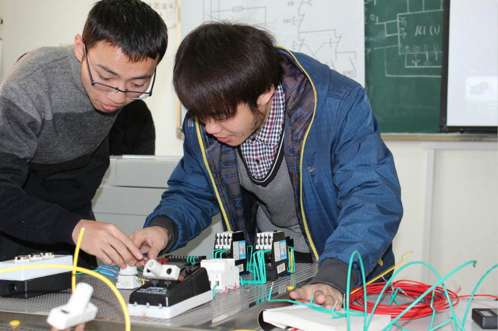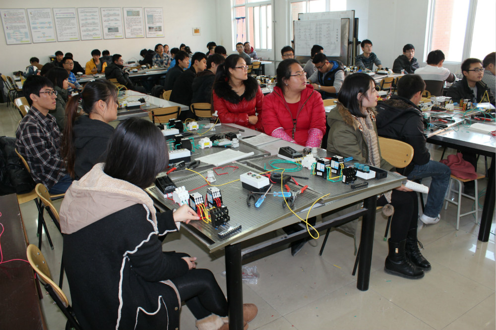 20131130日,軌道交通學院組織2012級考生進行了第一批電工證實際操作考試,主要考查同學們連接雙重互鎖電動機正反轉控制電路和觸電急救人工操作的實際能力。