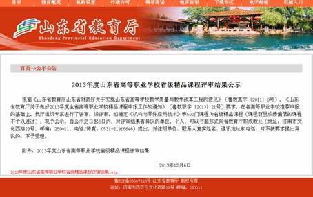 20131211工程施工與計價系列課程經過山東省教育廳的評審和公示,成為2013年度山東省精品課程。
