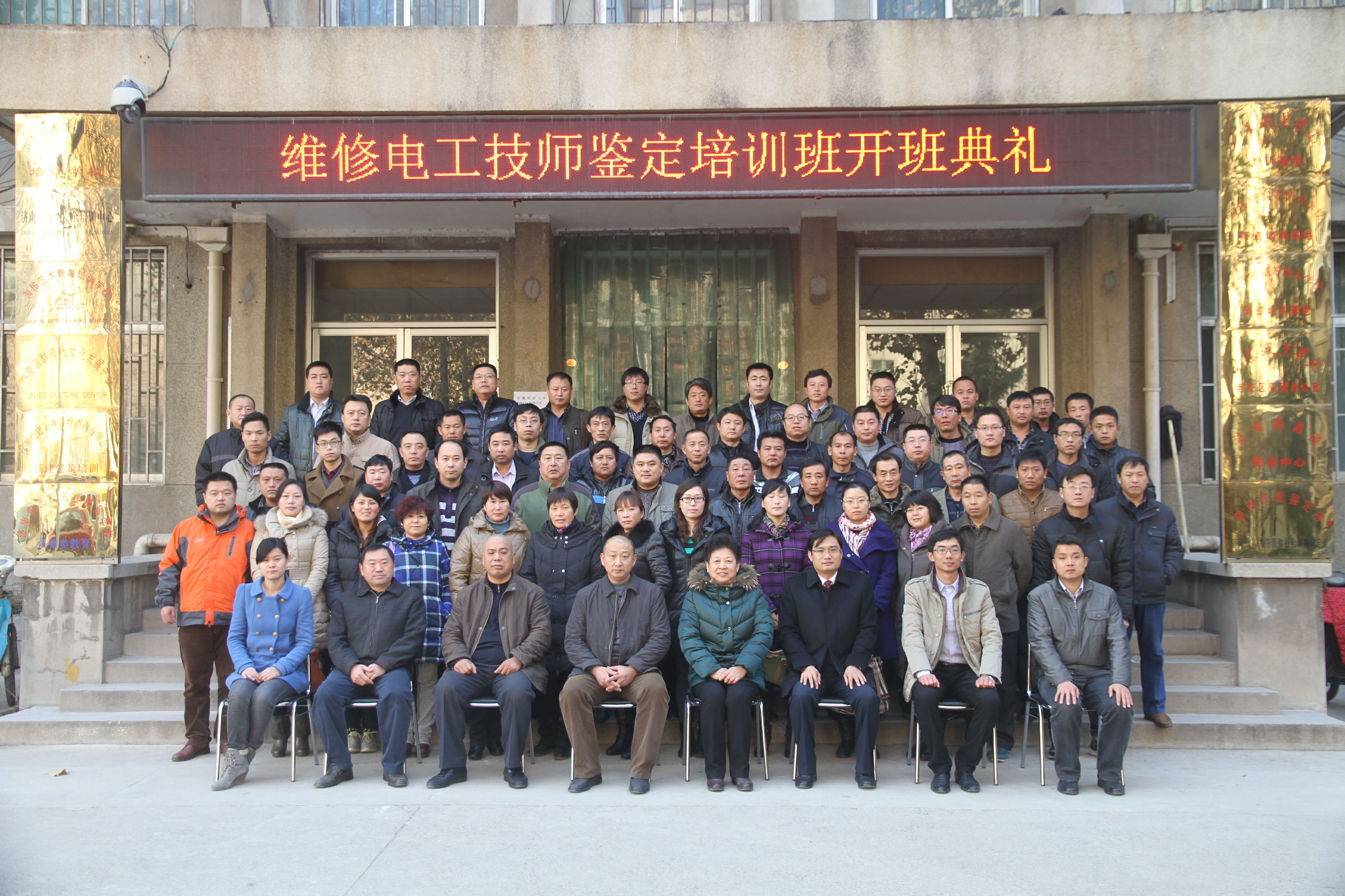 201312101215,電力系統第一期維修電工技師培訓班在山東職業學院職業技能鑒定所培訓中心開班,共有105名一線職工進行了培訓。我院電氣化鐵道項目組骨干教師王暉、趙勇,承擔了本次培訓班的授課任務。