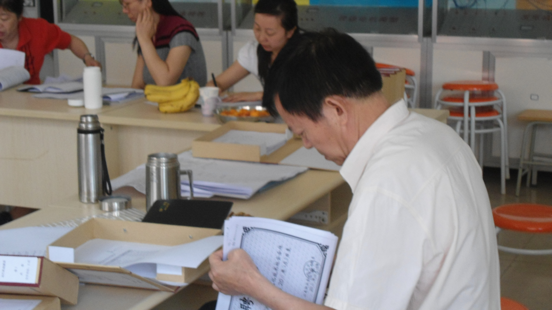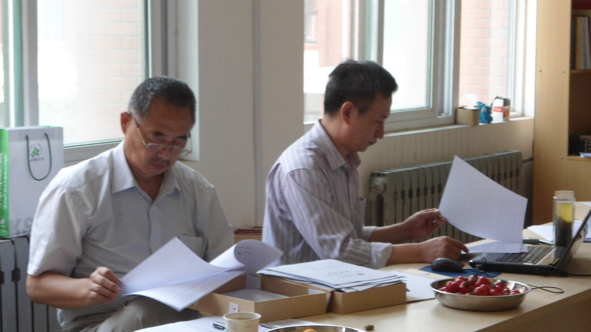 考核檢查組專家認真檢查各項資料                      考核檢查組專家認真檢查各項資料