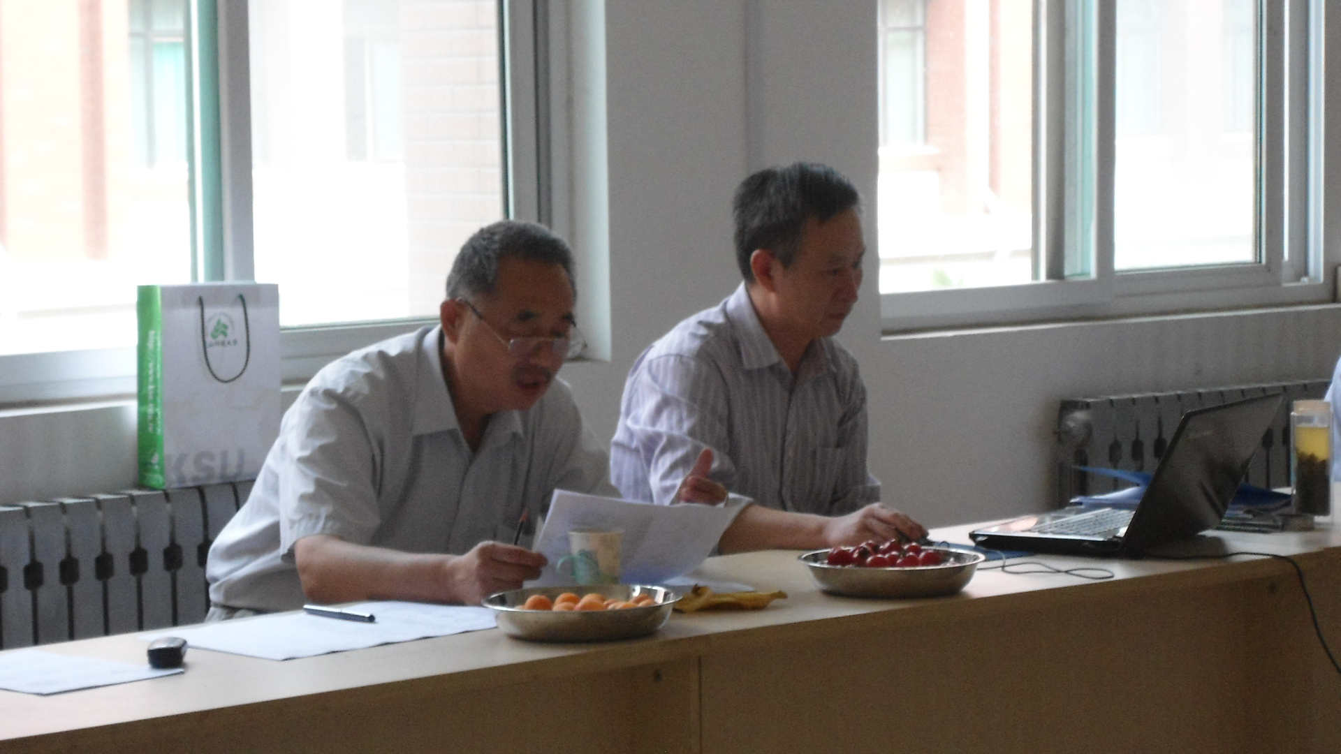 考核檢查組聽取項目負責人匯報                                  考核檢查組專家認真檢查各項資料
