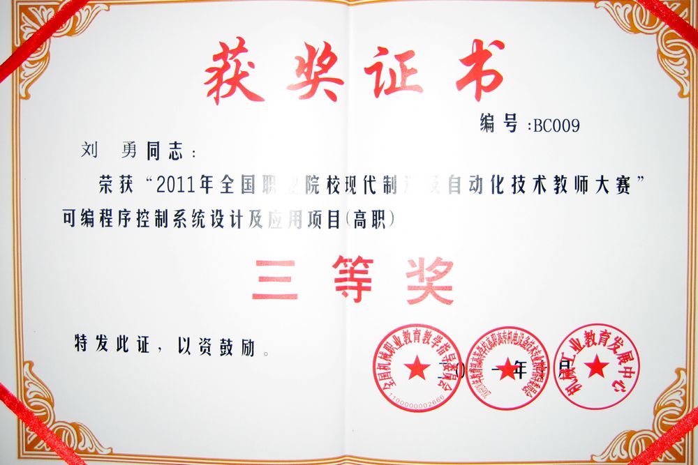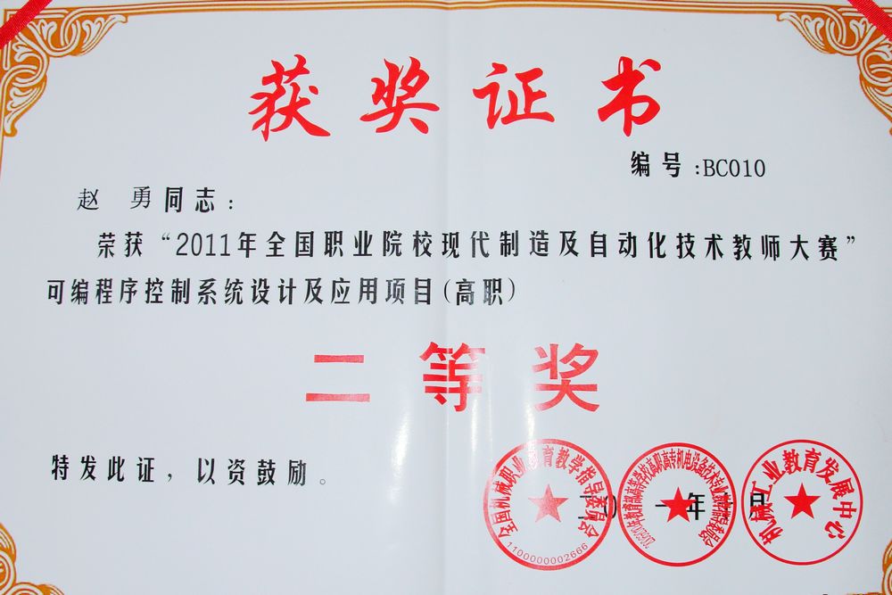 面對眾多院校選手的競爭,在沒有賽項設備的情況下,趙勇、劉勇老師提前一天趕到天煌科技公司在實訓設備上調試。在29日的比賽中,兩位教師不畏眾多院校的年輕選手,正常發揮,最終趙勇老師獲得大賽二等獎好成績,劉勇老師獲得大賽三等獎好成績。