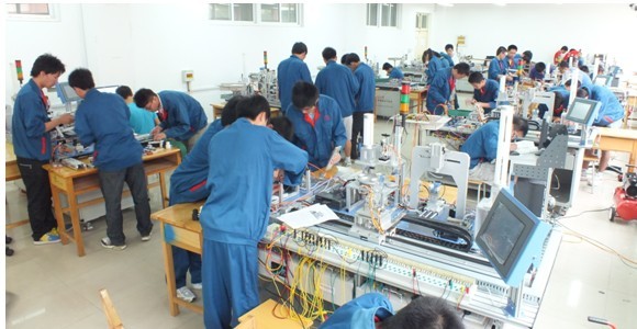 2012年3月12日,機電裝備系自動生產線實訓室設備安裝調試到位,并通過學院及系部驗收。自動線實訓室總投資200余萬元,配備有亞龍YL-335B自動線6條,天煌THJDAL-2自動線12條,可供機電類的學生進行學習與實訓。自動生產線設備綜合應用了多種技術知識,如氣動控制技術、機械技術、電工電子技術、傳感器應用技術、PLC控制技術等。該自動線設備配置了以下各單元:供料站、加工站、裝配站、分揀站、輸送站,每站都具有特定的功能,可以單獨使用,也可自由組合。