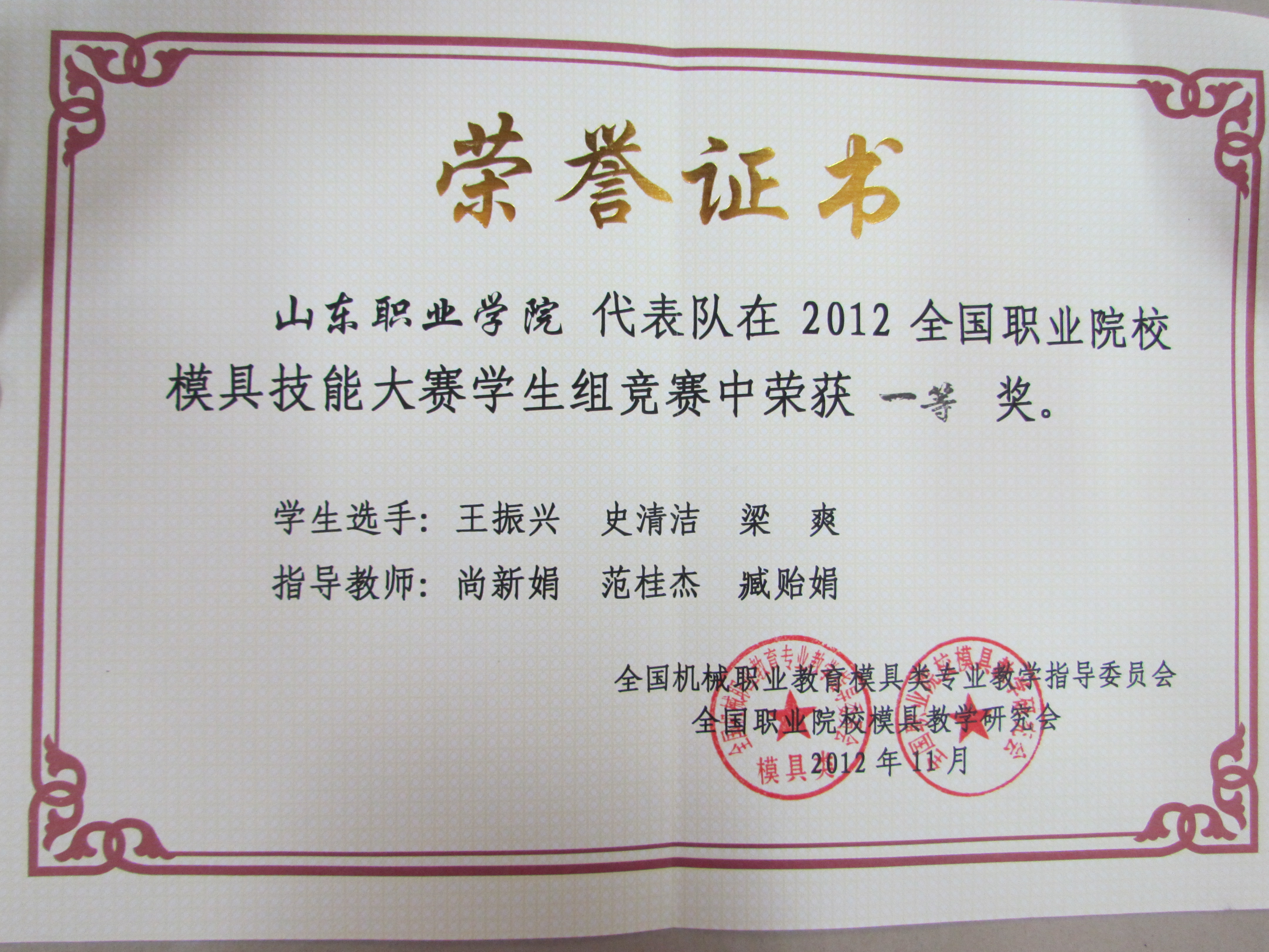 2012年11月23日-25日,全國職業院校模具技能大賽在天津輕工職業技術學院舉行,共有來自全國各地的31個代表隊參加。經過2天的緊張角逐,我院機械工程系派出的代表隊喜獲學生組一等獎第二名,這是繼去年我院參加此項賽事獲得三等獎后,獲得的又一好成績。