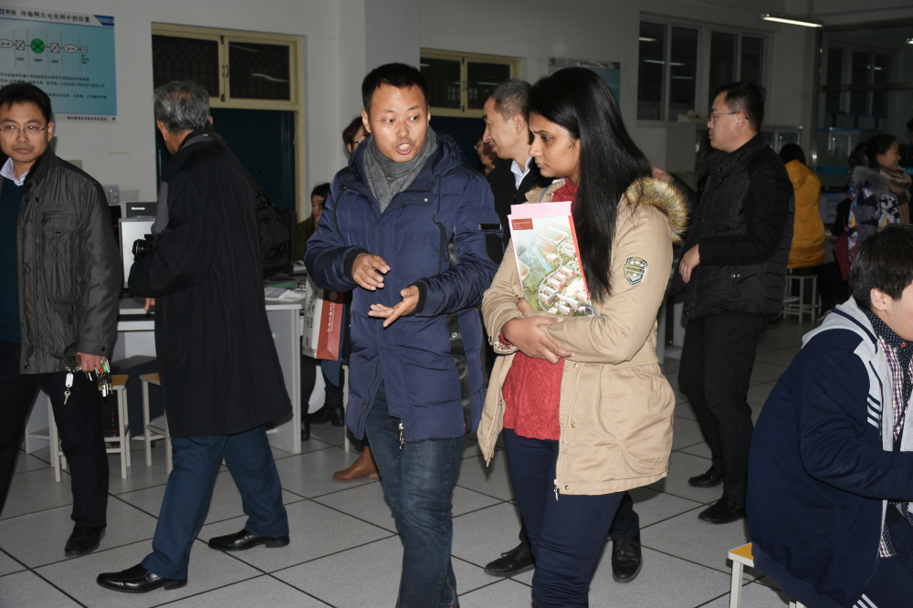 會后,斯里蘭卡莫勒圖沃大學教師代表團參觀了機械制造工藝實訓車間,現代通信技術綜合實訓基地、鐵路施工技術實訓場,軌道交通綜合實訓中心,信號和控制實驗室等,各實訓室和演練場所內均由專業教師向來賓用英文做了詳細的講解,講解精彩,加深了來賓對實訓設備、項目教學和教學做一體化的理解。