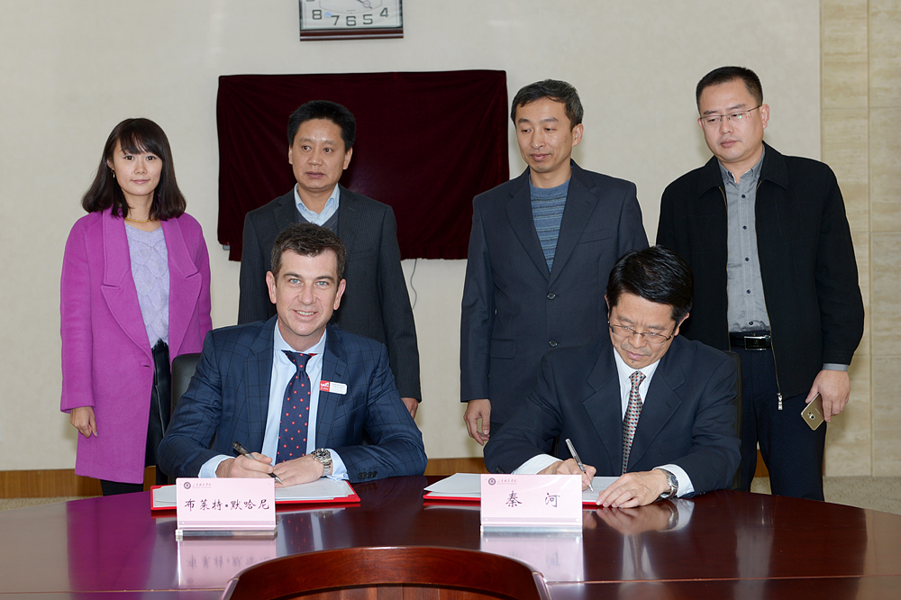 11月16日,澳大利亞南澳職業技術教育學院校長布萊特.默哈尼、國際交流合作主任趙珂到我院訪問,院長秦河、副院長郭鵬會見來賓。院校雙方就合作辦學、師資培訓、人才培養等方面進行了深入友好的交流,并簽署了合作諒解備忘錄。