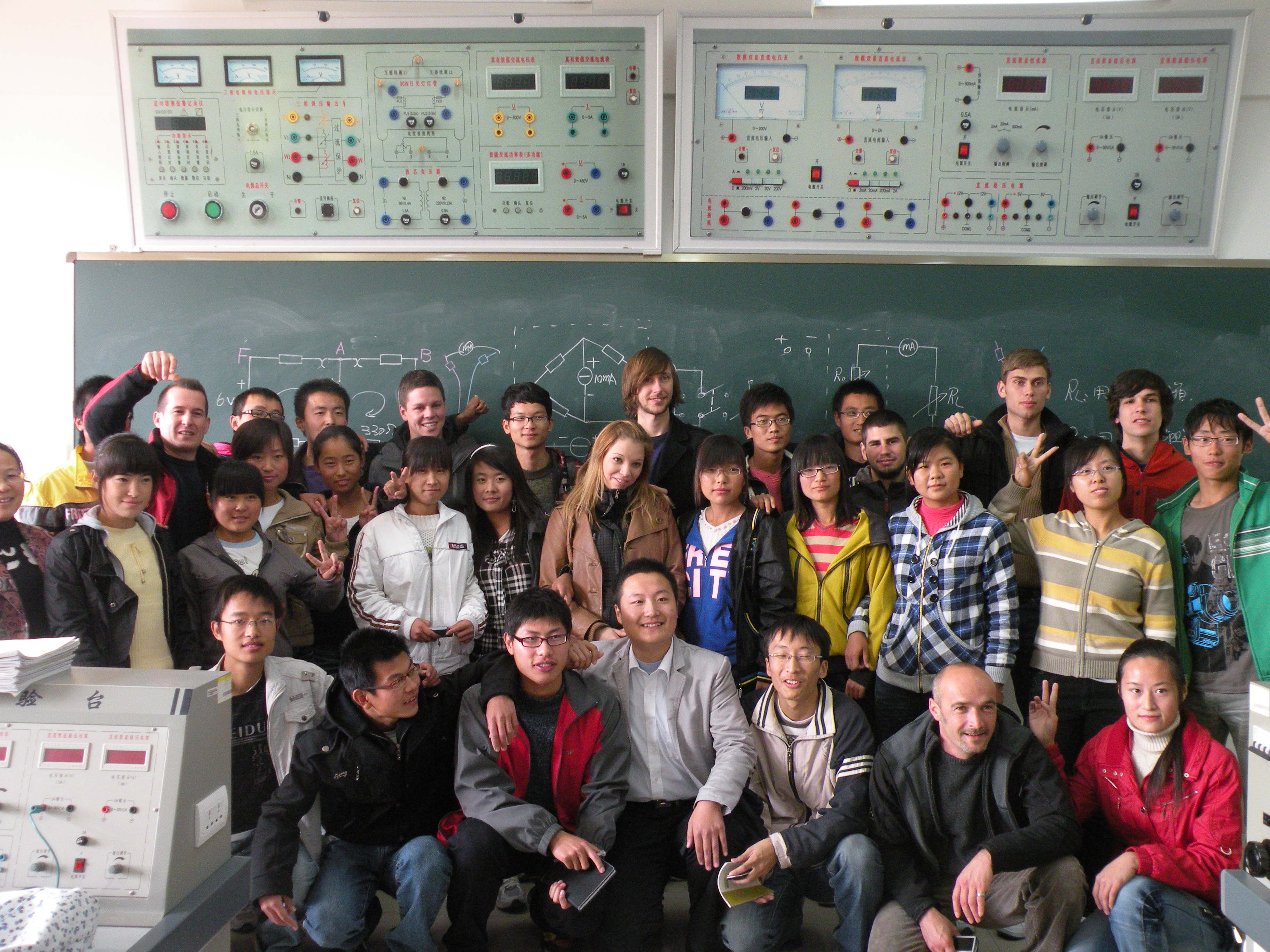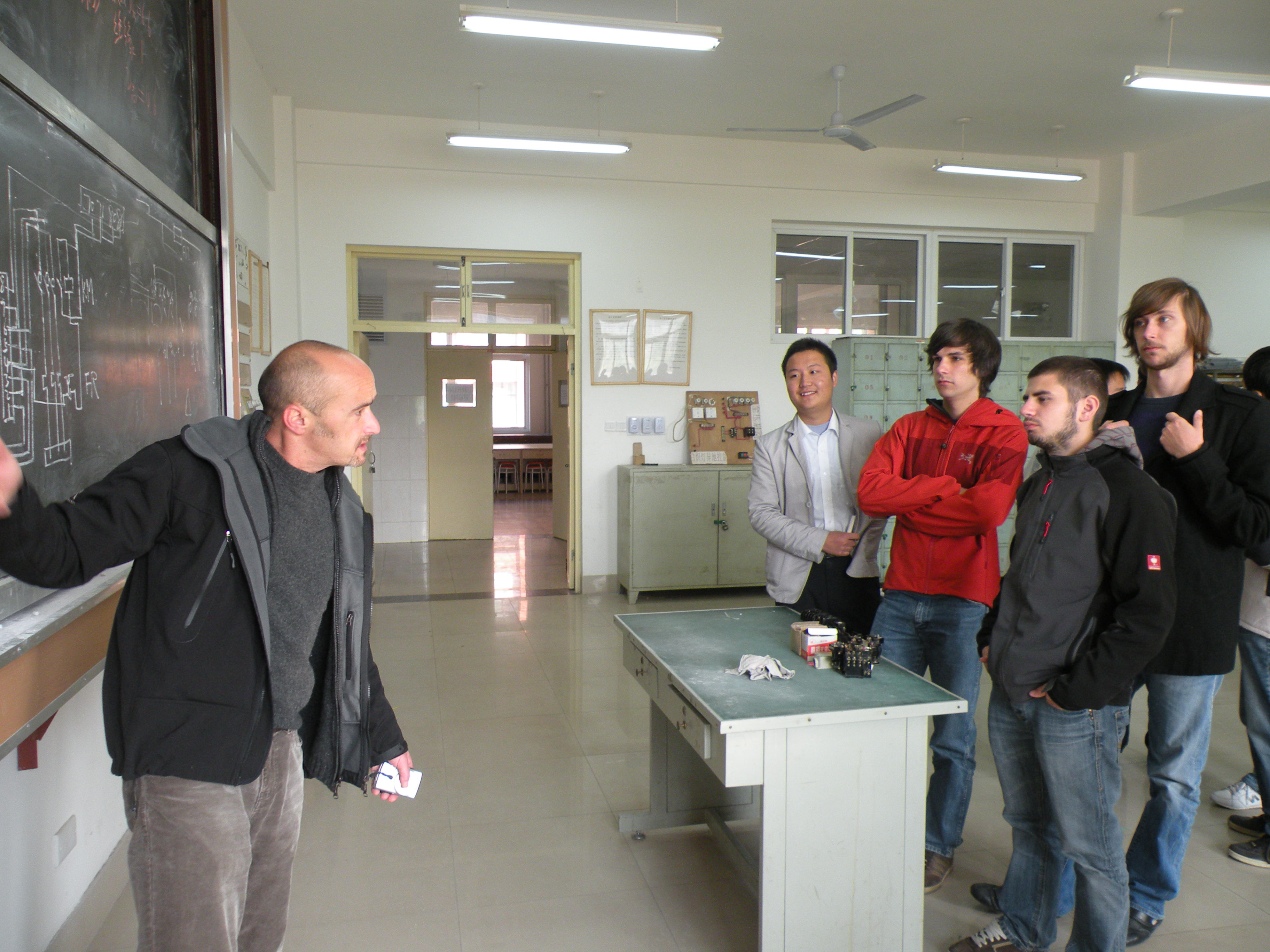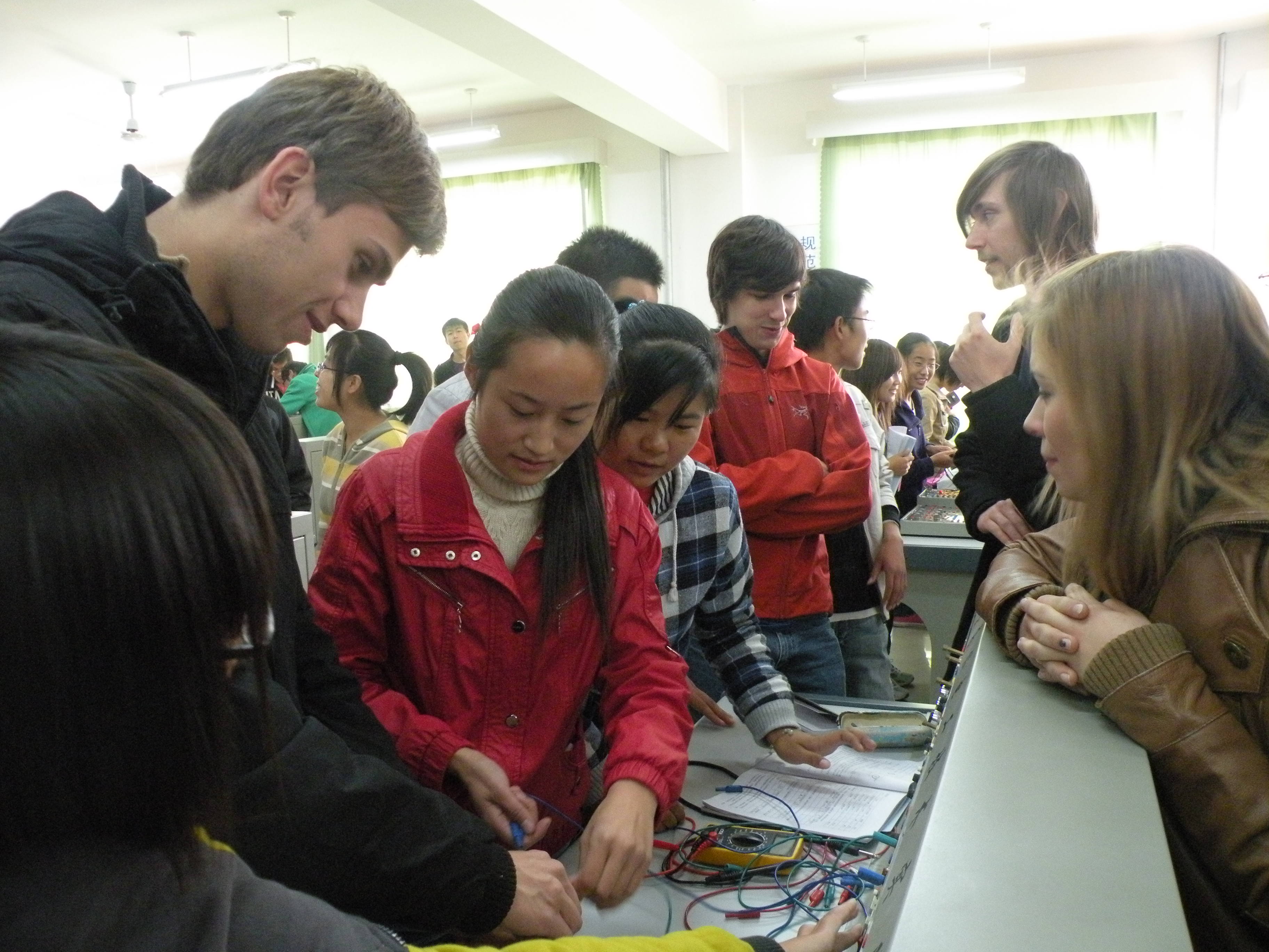 27日上午,電氣工程系于洪永主任、黨總支徐曉東書記和我系師生代表與德國師生代表團進行了增進友誼的座談會。座談會上,于主任首先代表電氣工程系全體師生對德國師生代表團的到來表示熱烈歡迎。隨后,于主任向他們簡要介紹了電氣工程系的專業設置及培養目標,并解答了來訪師生提出的問題。一番親切的交談過后,在于主任的帶領下,德國師生參觀了電氣工程系的電工實訓室、電機與電器實驗室、電子實驗室、SMT實踐基地等實踐教學場所,并與電氣工程系的學生一起上課、實訓,探討實踐內容。在電子實驗室參觀期間,德國學生對實驗臺上的線路產生了濃厚的興趣,主動要求與我系同學一起進行實驗操作,德國老師FellnerAndreas也進行了現場教學,德國師生的精彩展示讓我系師生大開眼界。課程結束后,我系學生和德國學生一起拍照留念,記錄這難忘的一刻。