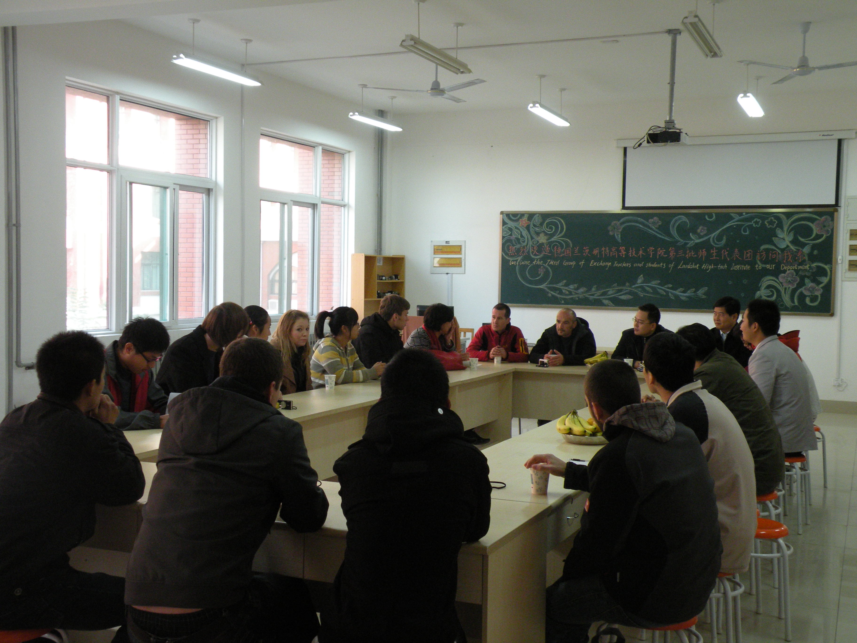10月27日至28日,德國蘭茨胡特高等技術學院HelmutKöglmeier、FellnerAndreas兩位項目負責老師帶領AmannMarkus、BlenningerMichael、LippChristian、HobmeierMarie-Louise、HaeglspergerManuel、LinzKilian六名學生來電氣工程系訪問。電氣工程系于洪永主任、黨總支徐曉東書記熱情接待了來訪師生,并組織我系師生與客人開展豐富多彩的交流活動。