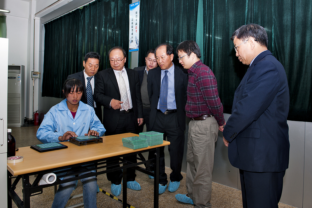 洽談會后,韓方在學院領導的陪同下一起參觀了學院電氣工程系SMT生產線實訓室,合影留念。