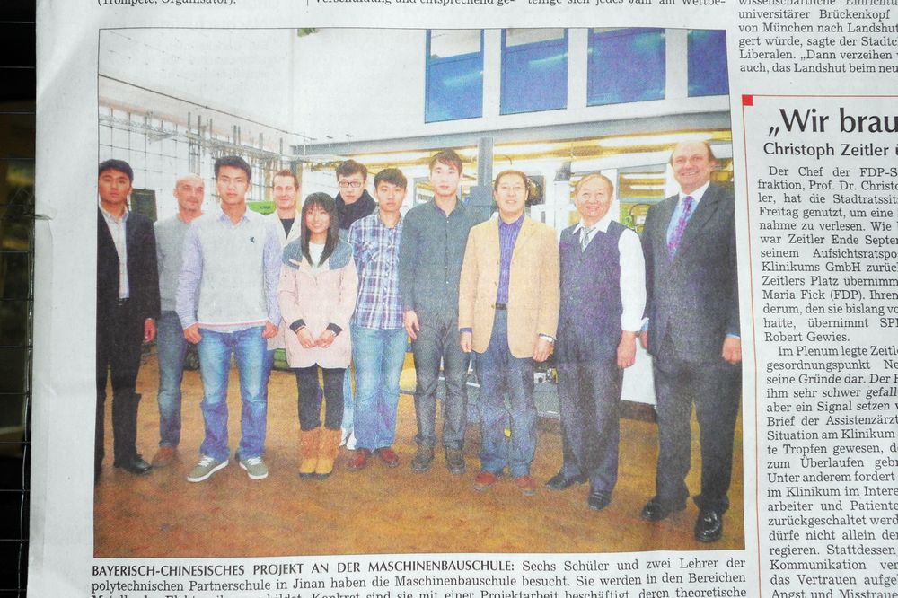 為期一周的共同項目加工制作,共同豐富多彩的活動,加深了中德大學生之間的友誼。11月30日,蘭德舒特報紙對兩校師生共同進行產品制作的情況進行了報道,并刊登了我院師生與蘭德舒特高等技術學院校長和教師的合影。