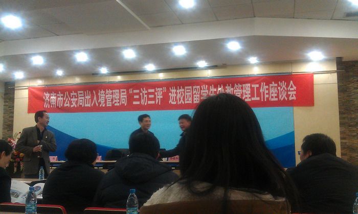 李軍在會上通報了去年一年濟南市出入境工作情況,分析了當前工作的新形勢、工作中遇到的新問題,宣布了外國人管理工作中的新舉措及新的便民服務措施。孫祖興、張賓分別就山東省教育外事管理工作、外國專家管理工作提出要求并做出詳細部署。山東大學國際教育學院、山東師范大學國際交流與合作處分別介紹了留學生管理工作、外教管理工作的一些經驗和做法,得到了與會代表的一致認可。