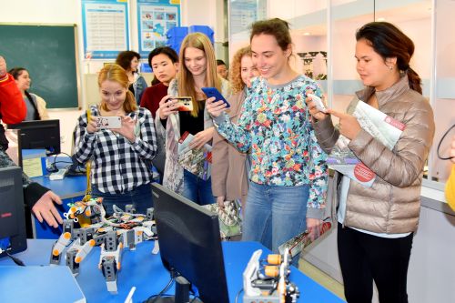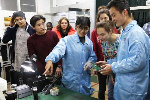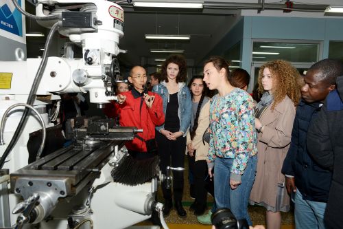 為確保此次認知實習取得良好效果,學院前期為學生講解員和志愿者進行了專業英語培訓,并安排“雙語”教師在各實驗實訓場所做好講授。在機械制造工藝實訓車間、自動化生產線實訓室、數控銑床裝調實訓室,在現代通信技術綜合實訓基地、SMT實訓室、鐵路施工技術實訓場,留學生們認真觀察、詳細了解各實訓設施設備性能及工作原理,對“教學做”一體化課堂環境贊不絕口。在機器人創新實訓室,留學生們對中國學生制作的機器人產生了濃厚興趣,躍躍欲試操作控制。在軌道交通綜合實訓中心,留學生們被城軌實訓車吸引,在專業教師的指導下,操作模擬駕駛系統,學習駕駛工作流程。認知實習期間,留學生們還品嘗了食品加工技術專業學生親手制作的糕點、老酸奶等美食,感受中華飲食文化的博大精深。實習結束前,兩校學生依依惜別并拍照留念。