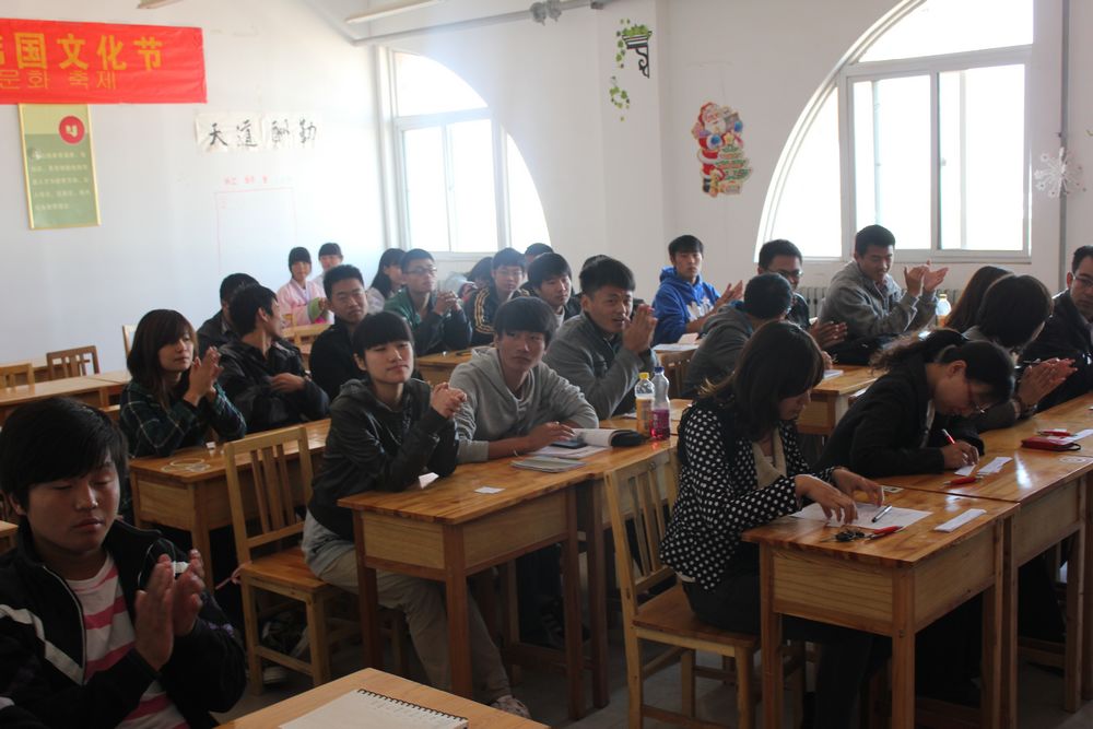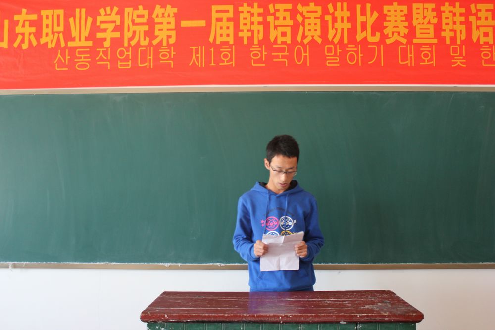 韓語演講比賽由國際交流中心李彥、莊婷、郭經偉老師,以及有韓國留學經歷的李林林、榮映菡老師擔任評委。中韓班大二學生8名、大三學生1名,共9名選手參加了比賽。雖然決大部分選手是大二學生,僅學習了不到兩個半學期的韓語,但是學生們積極準備,展示了自己的韓語水平,展現了良好的精神面貌,讓我們看出了他們的努力,看到了中韓班學子的風采。