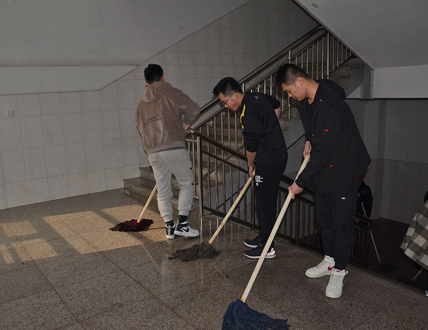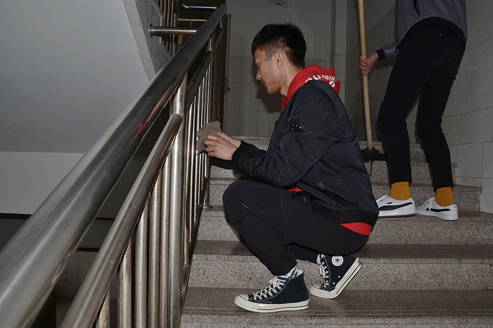 活動過程中,學生黨員及入黨積極分子對我院玻璃展板及教學樓處的衛生進行清掃,大家相互配合,不怕臟,不怕累,認真擦拭玻璃展板及教學樓樓梯扶手,同時清理地面垃圾與教學樓死角處的灰塵、蛛網,將遺落的塑料袋、易拉罐、礦泉水瓶等可回收利用垃圾分類整理。在大家的辛勤勞動下,教學樓環境最終煥然一新。同學們紛紛表示,一定刻苦鉆研專業知識,練就為人民服務的本領,在今后的生活中用奉獻向新時代注入一份力量。