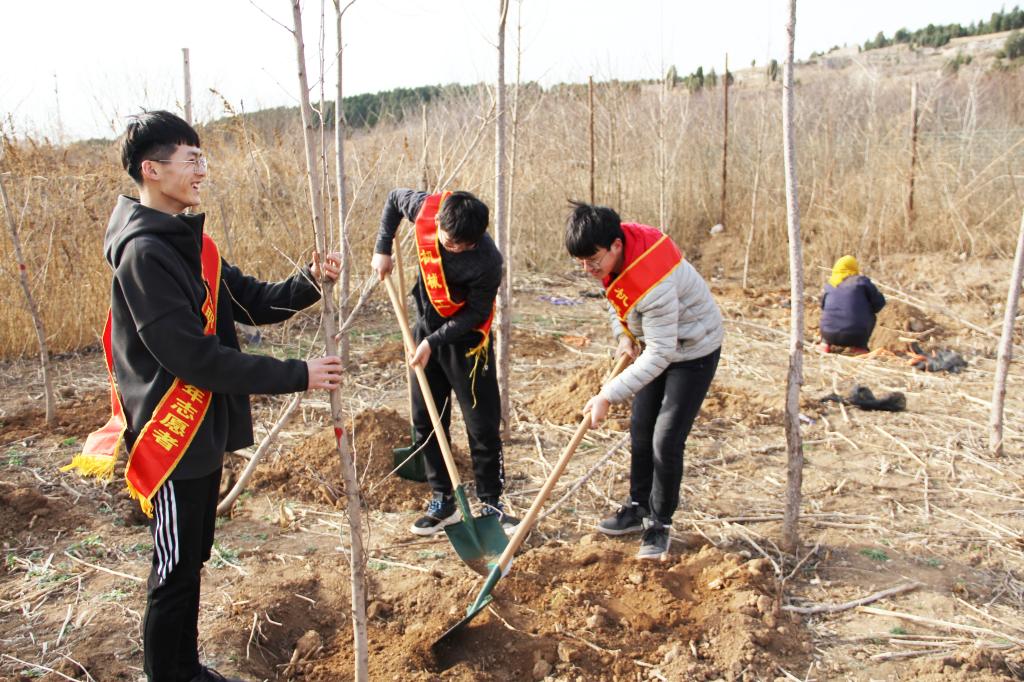綠色手中播,茵茵綠意濃。下午的植樹過程中,同學們有的揮動鐵鍬挖出一個個盆大的樹坑;有的手拿樹苗,兩三個人一組,把一棵棵鮮嫩的樹苗安放到“新家”;還有的搶著端盆打水,為樹苗提供成長的動力。大家忙的不亦樂乎,一時間校園農場里到處都是他們四處穿梭的身影,那一個個忙碌的身影儼然形成了一道風景線。同學們紛紛拿出手機和自己親手栽種的小樹拍照留念,同學們還為小樹取出一個個好聽的名字,為它們賦予更多意義。