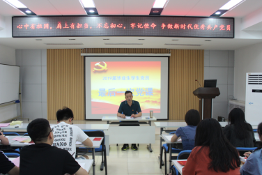 呂鵬以“心有祖國,肩上有擔當,不忘初心,牢記使命,爭做新時代優秀共產黨員”為題開始了最后一次黨課。他與學生黨員重溫了習近平在北京大學師生座談會上的講話,同時對大家提出了四點希望:一是勤于學習,敏于求知,將所學的知識應用到各個方面,擔當起社會的責任;二是加強道德修養,注重道德實踐,要“見善則遷,有過則改”爭做德才兼備的人;三是學會明辨是非善惡,做出正確的判斷,樹立正確的人生觀、世界觀、價值觀;四是扎扎實實干事,踏踏實實做人,只有邁穩步子,夯實根基,才能抓住機遇。