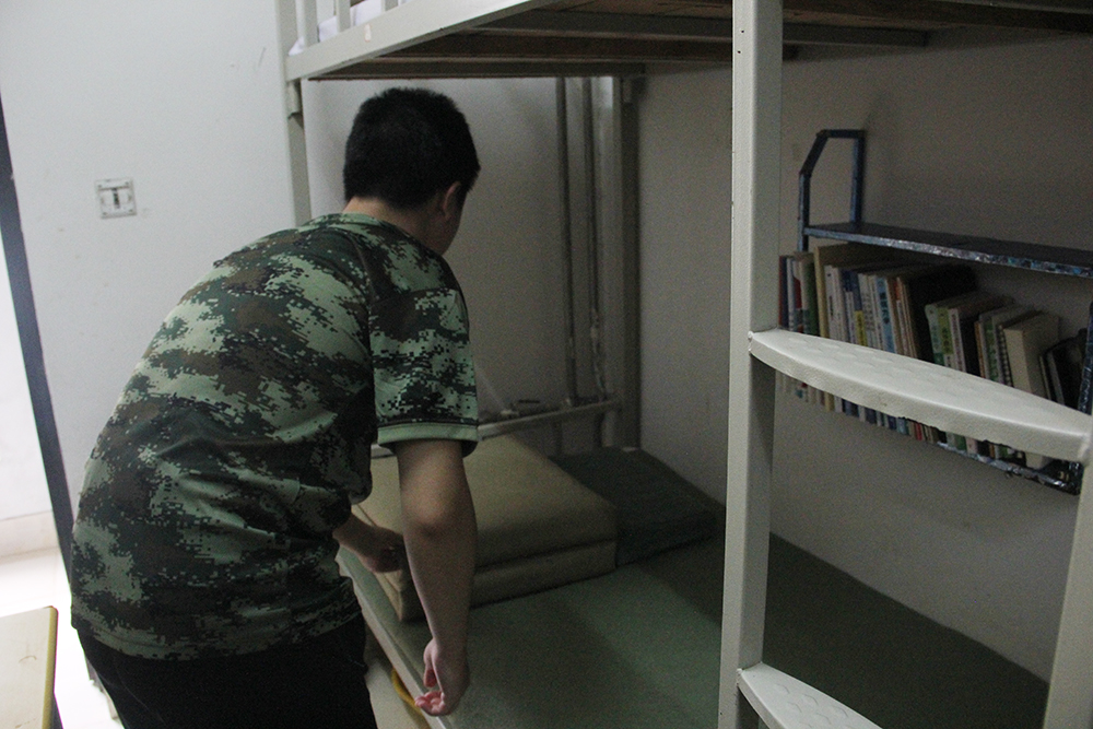 走進宿舍,映入眼簾的就是一床床整齊的被子、排成一列的鞋子、擺放規范的洗漱用品,看到這里使人不由想起軍隊中的一絲不茍、規范整潔。他們把在軍隊中的習慣帶到了學校,讓大家看到了眾多宿舍中的一個亮點,更看到了一種意志。宿舍作為大學生活中最基本的單位,發揮著重要的作用,全體同學都有義務維護好宿舍環境。最后,同學們紛紛表示,一定會把軍人精神傳達給每個同學,和同學們一起養成良好生活習慣,共同創建安全、文明、溫馨、整潔的宿舍環境。