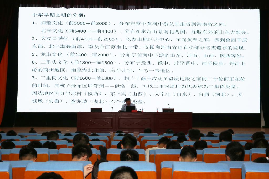 5月26日下午,我校人文大講堂第一期在西報告廳隆重開講。山東師范大學呂文明教授應邀做專題講座。院長秦河出席并為呂文明教授頒發客座教授聘書。講座由人文與基礎課教學部主任趙龍主持。人文與基礎課教學部教師代表,各書院輔導員及學生代表參加了講座。