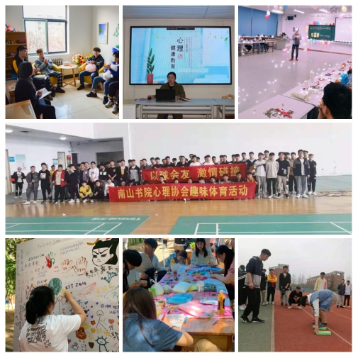 各書院心理輔導站也結合實際情況開展了系列特色活動。三味書院為專升本同學開展“春日心晴,減壓潤心”團體心理輔導活動,教給學生緩解壓力的方法;桐林書院舉辦主題為“5.25,我愛舞”的面具化妝舞會,增強學生交友的勇氣與力量;易安書院開展“5.25我愛我之‘解憂集市’”活動,通過情緒回收站、繪物涂鴉、“植”為遇見你等形式幫助同學排憂解難;東嶺書院通過心理大講堂,為學生開展《認識自己--培養良好的自我意識》《心理健康及急救技能專題講座》等專題講座,宣傳普及心理健康知識;南山書院通過運動釋放激情,緩解壓力,增強人與人之間的心理連結。