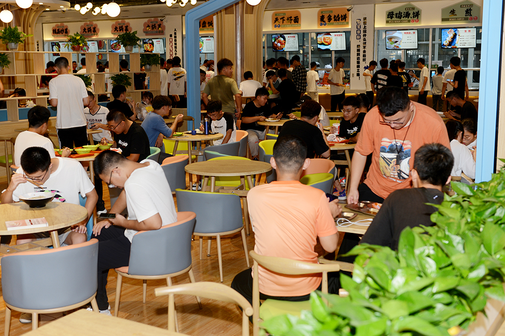 “上新”。為給學生提供更好的學習生活環境,今年暑假,學校投入、校企合作企業投入與社會資金投入相結合,對學生宿舍進行了升級改造,安裝了空調,對餐廳進行了重新裝修、功能改造。改造后的學生宿舍和餐廳煥然一新,宿舍硬件條件顯著提升,環境更加整潔溫馨。餐廳成為集餐飲、娛樂、休閑、學習于一體的多功能餐廳,學生的學習、生活條件有了大幅改善,學校辦學條件更加優化,有力提升人才培養質量。“學校餐廳是真的文雅,有種田園小苑的感覺,各種選擇很滿足,菜很豐盛,餐廳阿姨很熱情,有種家的感覺”,易安書院2021級城市軌道交通運營管理武興紅同學說。