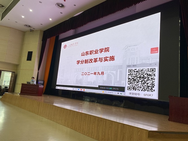 王超以《山東職業學院學分制改革與實施》為題,簡要介紹了我校實施學分制改革的背景和意義,重點解讀了學分制改革方案的主要內容、學分制收費相關規定及2021級人才培養方案的新變化,梳理了教師課程任課資格申請流程和學生選課流程。
