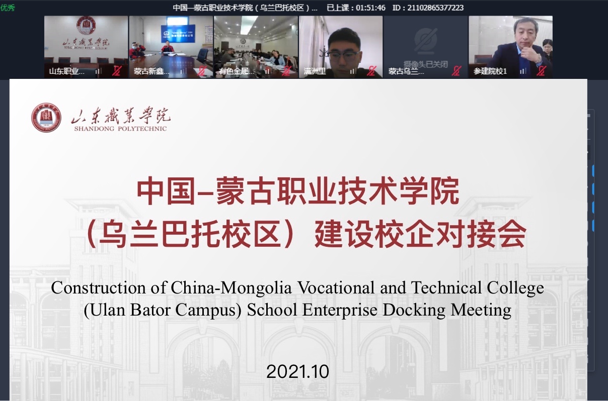 10月29日上午,我校牽頭組織召開中國-蒙古國職業技術學院烏蘭巴托校區建設校企對接會,副院長郭鵬、有色金屬工業人才中心教育培訓處處長趙麗霞、山東電子職業技術學院、德州職業技術學院、山東旅游職業學院、濟南職業學院相關負責人參加線下會議,蒙古國的海外企業中鐵資源新鑫有限責任公司黨工委副書記潘持卿等五位企業負責人通過線上方式連線參會。