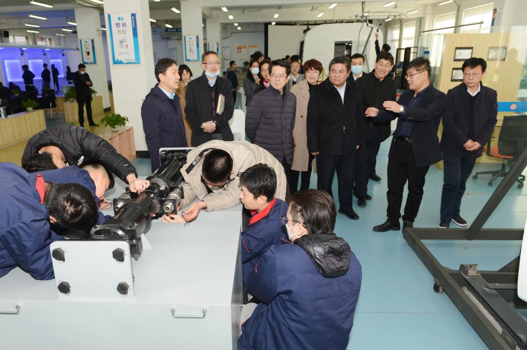 匯報會后,專家組一行實地考察了動車組機械師實訓室、鐵道機車實訓中心、軌道交通實驗實訓中心,新一代信息技術產業學院鐵道信號三維仿真虛擬實訓室、網絡安全實訓室、大數據實訓室,智能制造學院智能制造生產線、虛擬仿真與虛擬調試實訓室等學校實驗實訓場所。